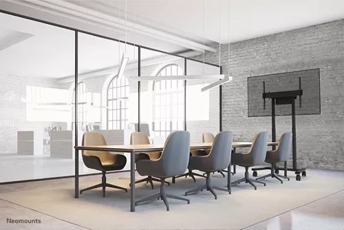 O Elevador MOVE Neomounts FL55-875BL1 é um suporte de chão móvel para monitores até 100″ com uma capacidade máxima de peso de 110 kg. O carrinho possui um ajuste de altura motorizado de 65 cm (35 mm/segundo), é operado por controlo remoto com fios e possui um sistema anti-colisão para maior segurança. Um compartimento para ferragens ventilado e com fecho, com abertura para cabos, está incluído e é opcional para a instalação.